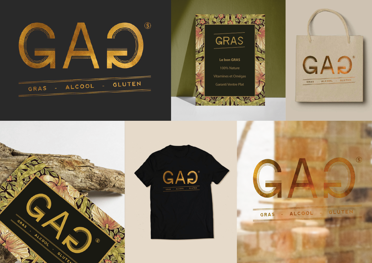 CRÉATION DE L'IDENTITÉ VISUELLE DU CONCEPT STORE "GAG" (GRAS-ALCOOL-GLUTEN) : BAR À MANGER/ÉPICERIE/BOULANGERIE/CAVISTE