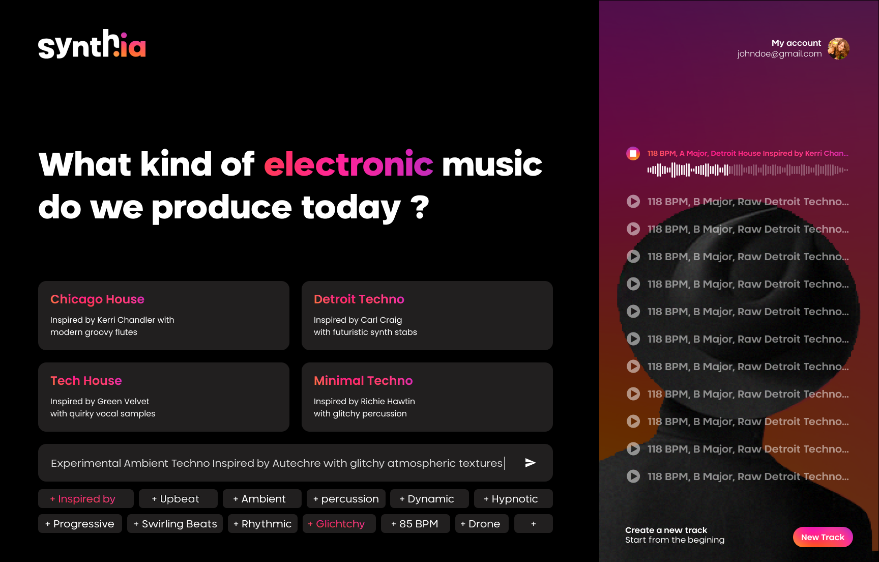 Identité visuelle de Synthia.co, assistant musical IA pour producteurs de musique électronique